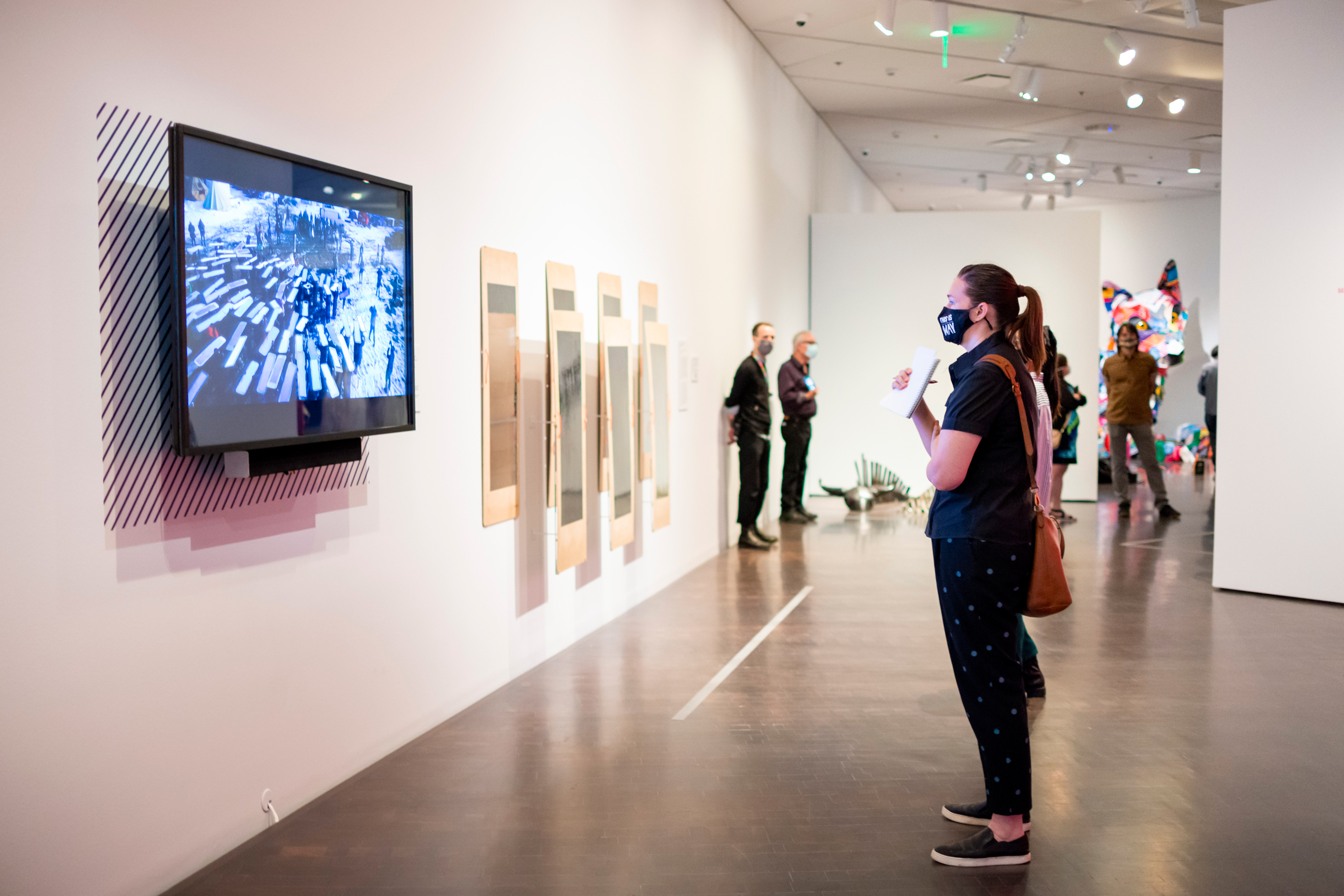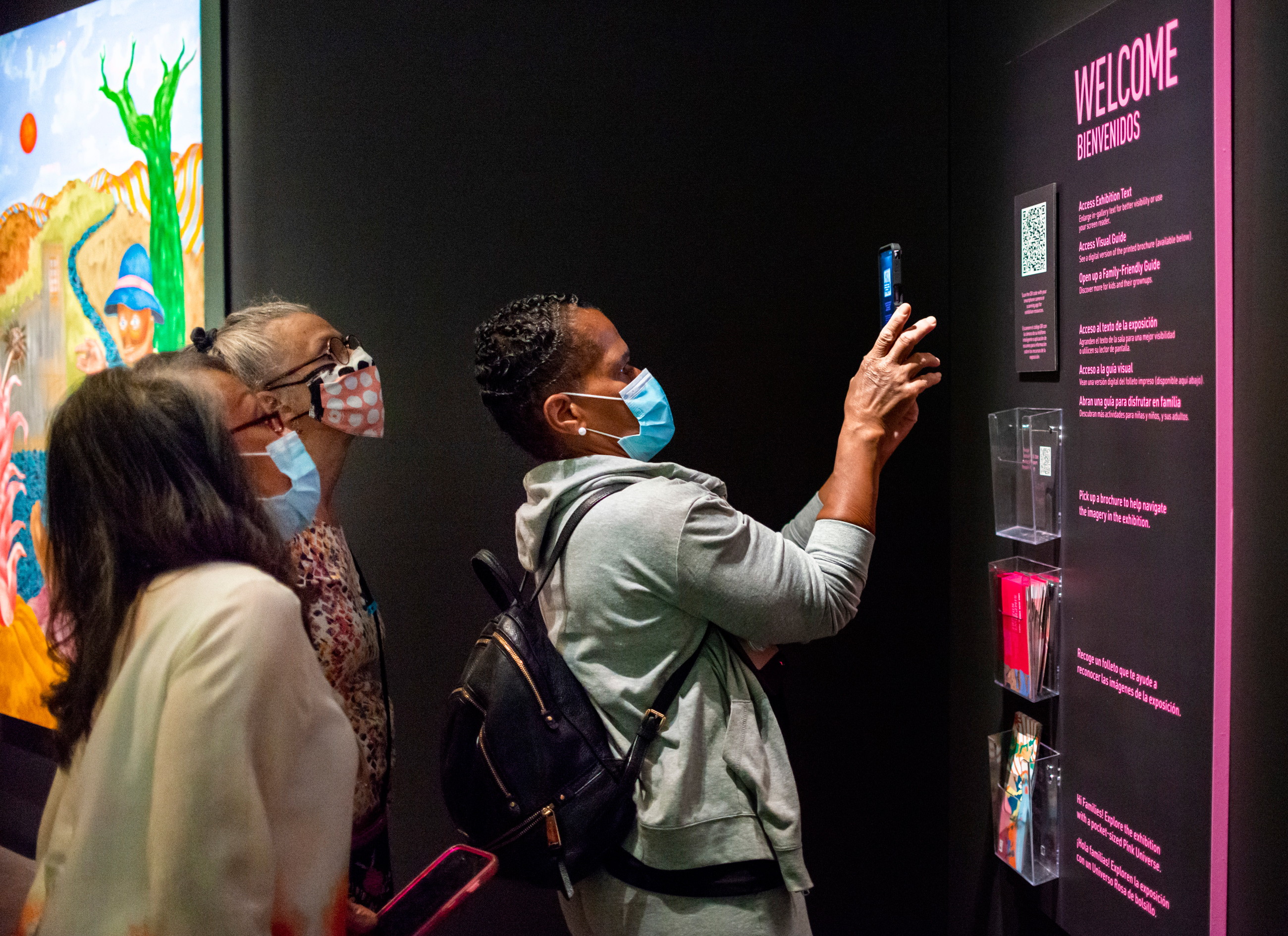 Large print and verbal descriptions can be found in online exhibition guides on select individual exhibition web pages. Select exhibitions also have accompanying audio tours. Printed transcripts of these audio tours are available near the exhibition entrance and available in both English and Spanish.