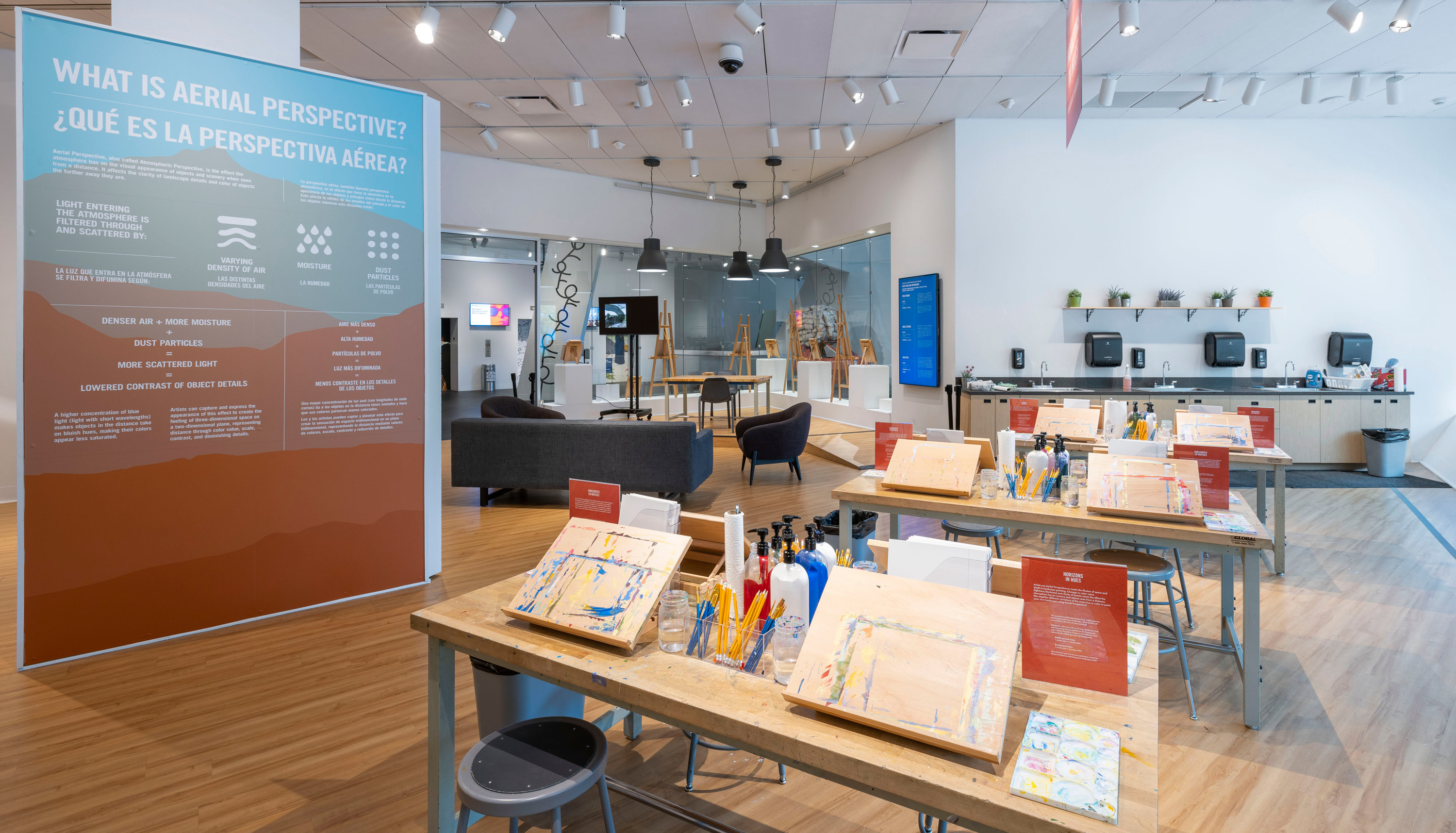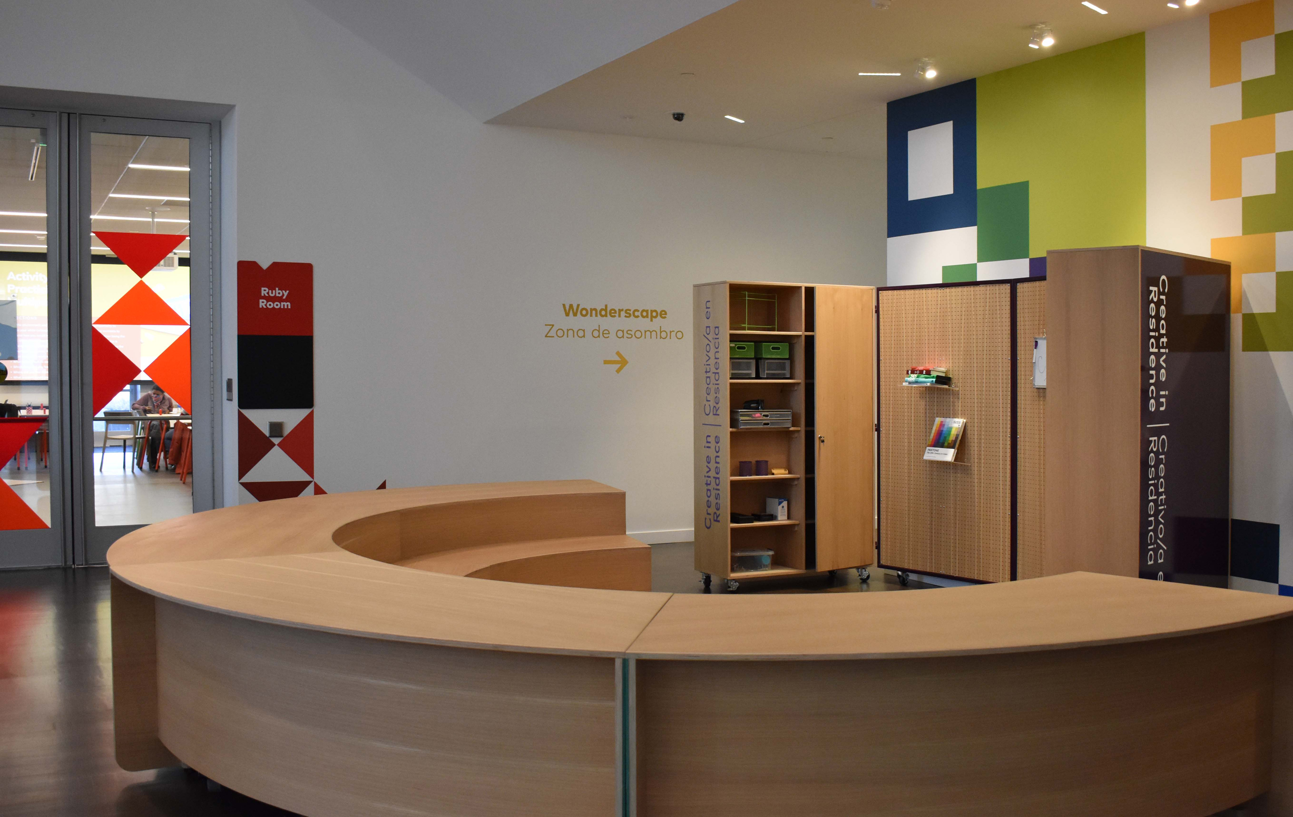 In the museum's Studio space on the main level of the Hamilton Building, visitors are invited to get a behind-the-scenes look at the creative process of a working artist from the local Denver community. Artists share their own artistic process and encourage visitors to go hands-on through artmaking activities throughout the space.