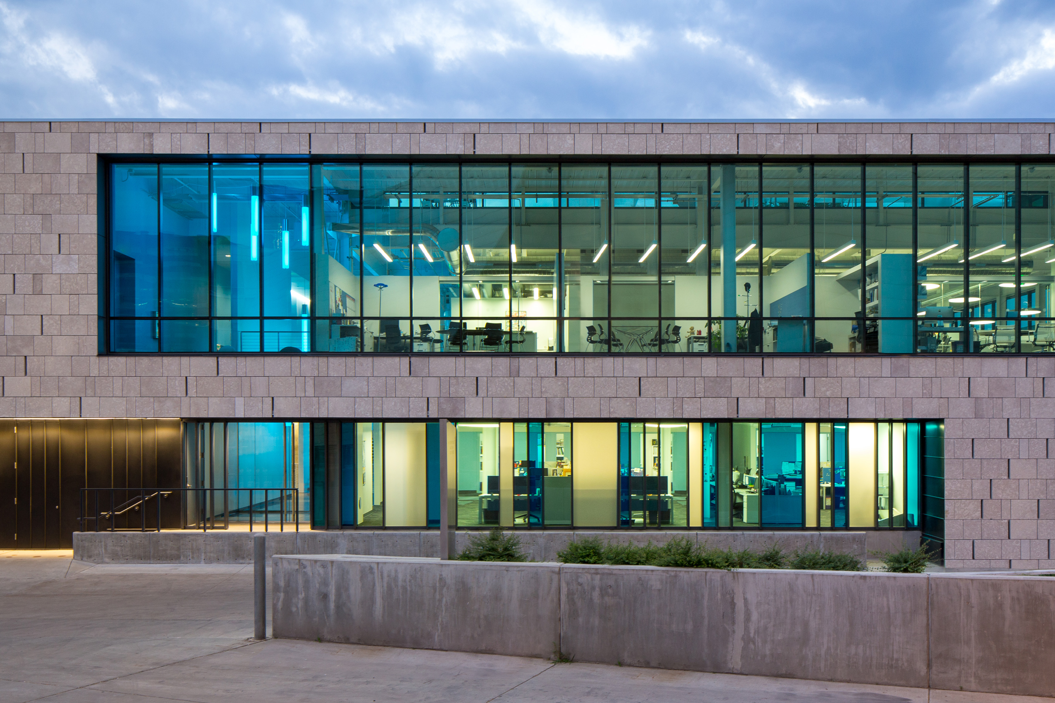Denver-based Roth Sheppard Architects and Saunders Construction, Inc., were selected to design and construct the building, which features glass and light-colored stone on the exterior to complement neighboring structures, and an open floor plan with various brainstorming zones that provide optimal working and meeting spaces to inspire creativity