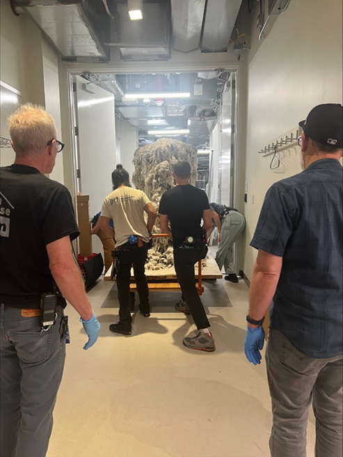 As part of my completion of The Patricia H. and Richard E. Garmen Art Conservation program at Buffalo State University, I assessed, examined, and treated the sculpture. I collected the scattered wax fragments into numbered bags, organized for reattachment, then treated. Once in the lab, I carried out dry cleaning using gentle vacuuming along with a cleaning putty to collect any loose dirt. With the assistance of Faith Godwin, Conservation Assistant, I performed aqueous (water-based) testing and cleaning via the Modular Cleaning Program. We produced a specialized cleansing solution to remove the embedded staining and debris.