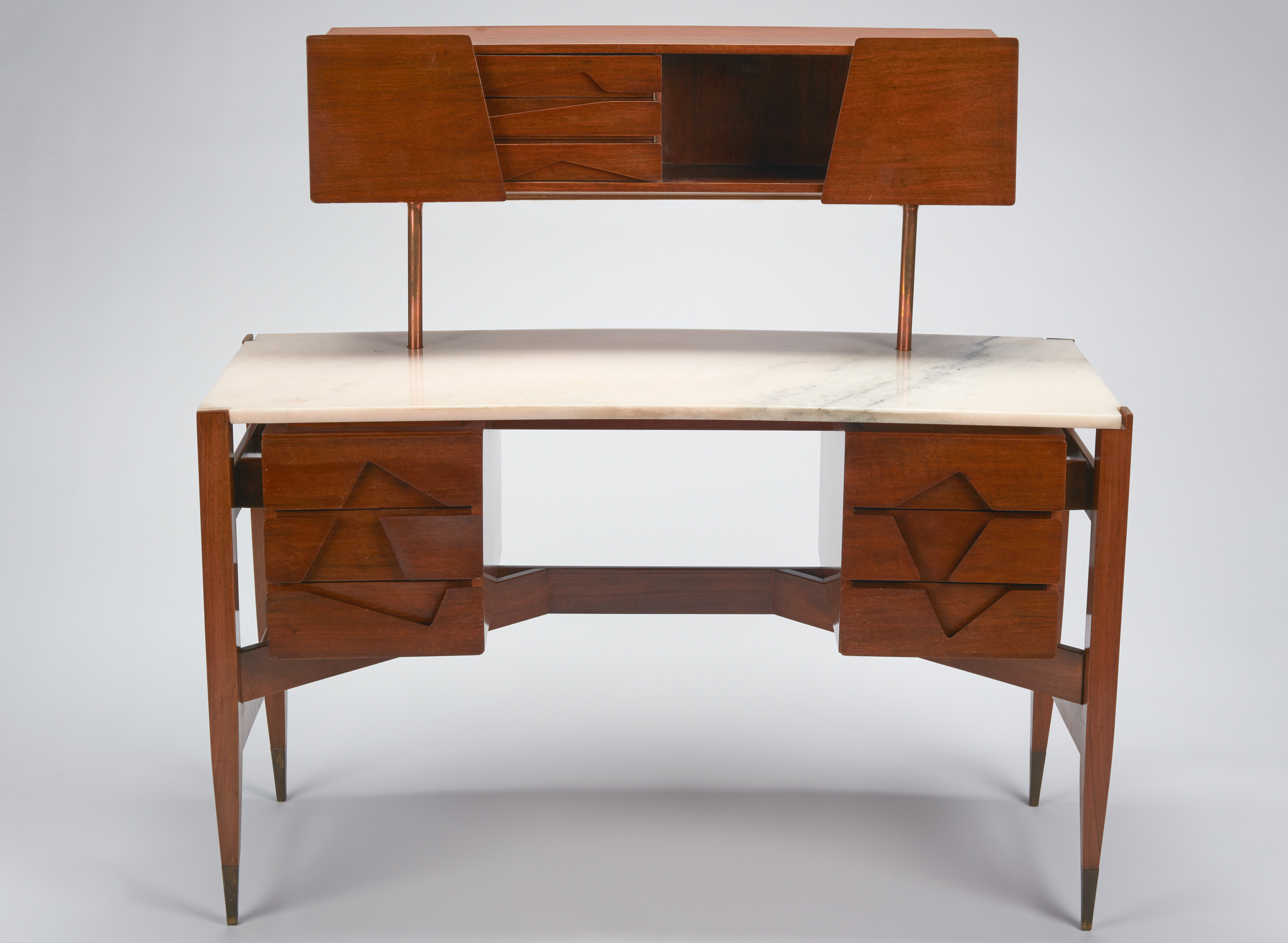Gio Ponti, Desk, about 1953. Walnut, marble, copper, and plastic; 49¼ x 50¼ x 19½ in. Manufactured by Giordano Chiesa, Milan, Italy. Denver Art Museum: Gift of the James Plaut Family Collection, 1994.1151.