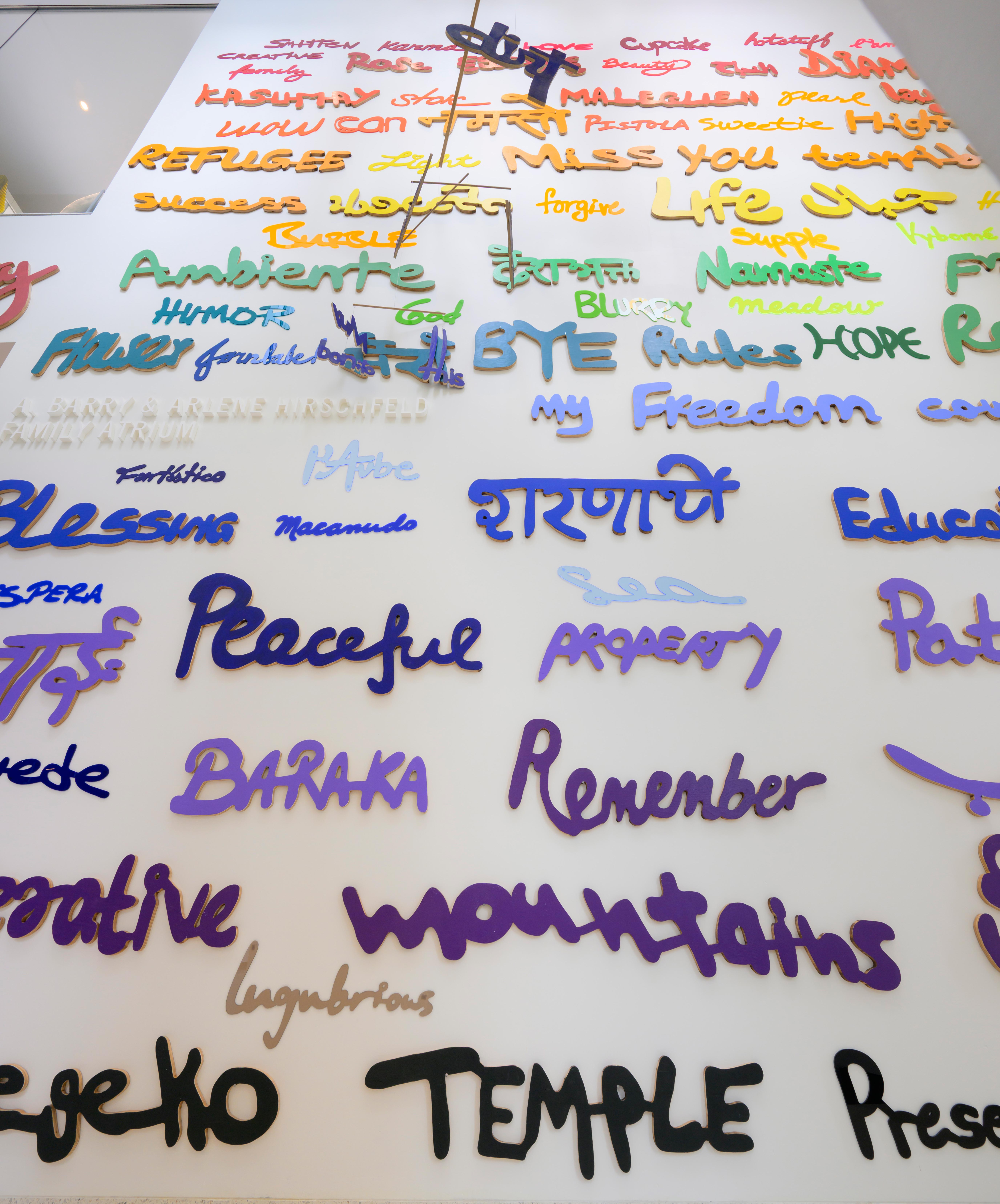 Rupprecht Matthies is known for his imaginative and reflective use of language in art. Matthies collaborated with Denver residents, including recently settled refugees and longtime community members, to gather words that encapsulate their personal interpretation and idea of “home.” Rendered in an array of languages and constructed of materials such as wood and acrylic, the words form a dynamic installation, echoing the city’s cultural spirit.